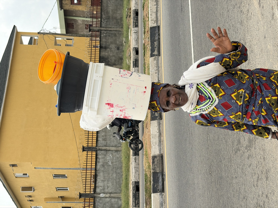 - "An elderly woman stands centered on the asphalt edge of a multi-lane road in Lagos, Nigeria" by FM-rkm0j2, licensed under CC BY 4.0