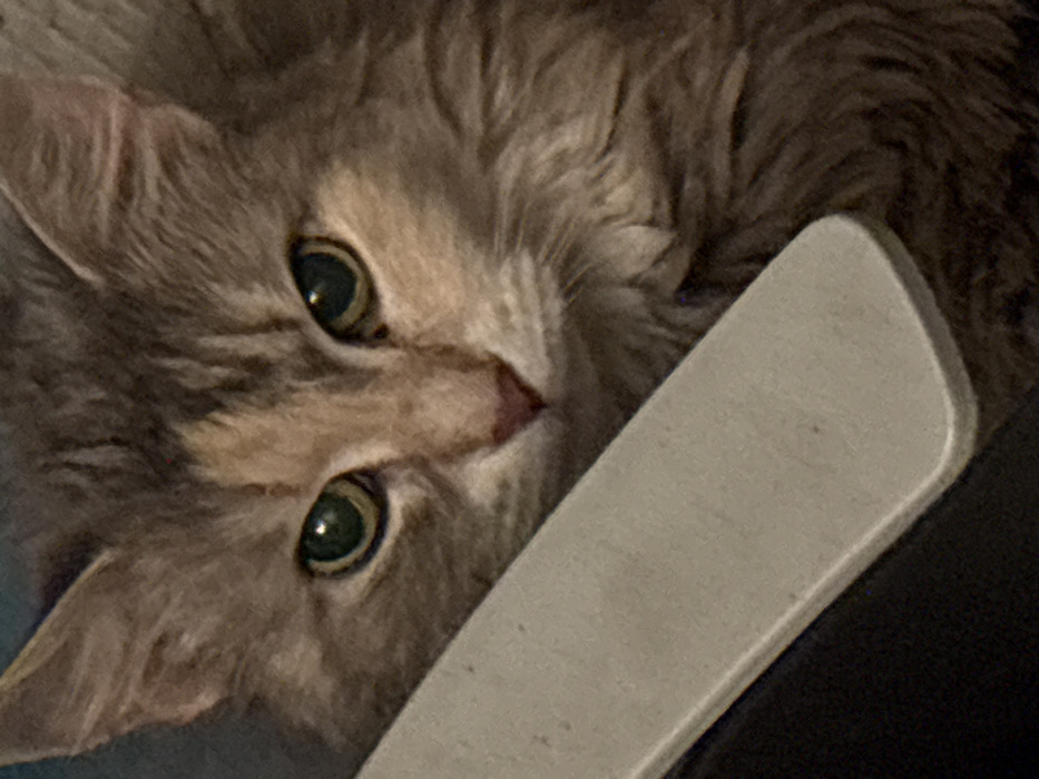 - "A close-up captures a furry, light-brown cat with piercing green eyes" by FM-fLERp2, licensed under CC BY 4.0