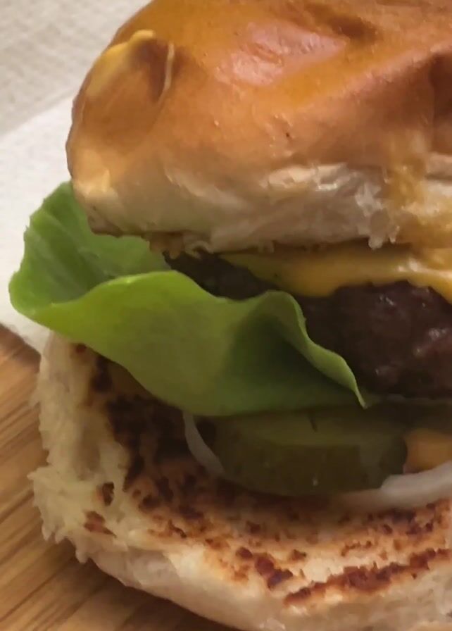 - "A close-up shot shows a hamburger on a wooden board" by FM-7zXIt1, licensed under CC BY 4.0