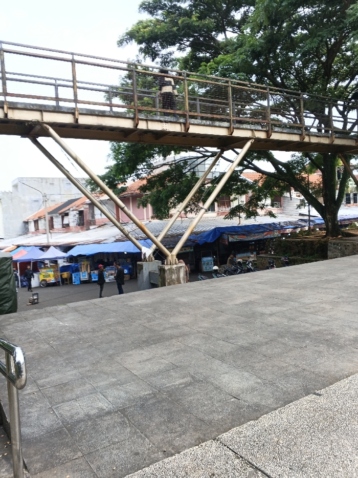 - "This image depicts an outdoor urban scene in Sarandi de Cuadra, Uruguay, characterized by a multi-level layout featuring a pedestrian bridge, a bustling market area below, and residential/commercial structures in the background, all under a bright, overcast sky" by FM-icDyG3, licensed under CC BY 4.0