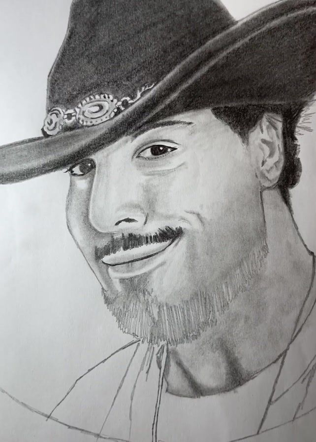pencil drawing of a man wearing a cowboy hat