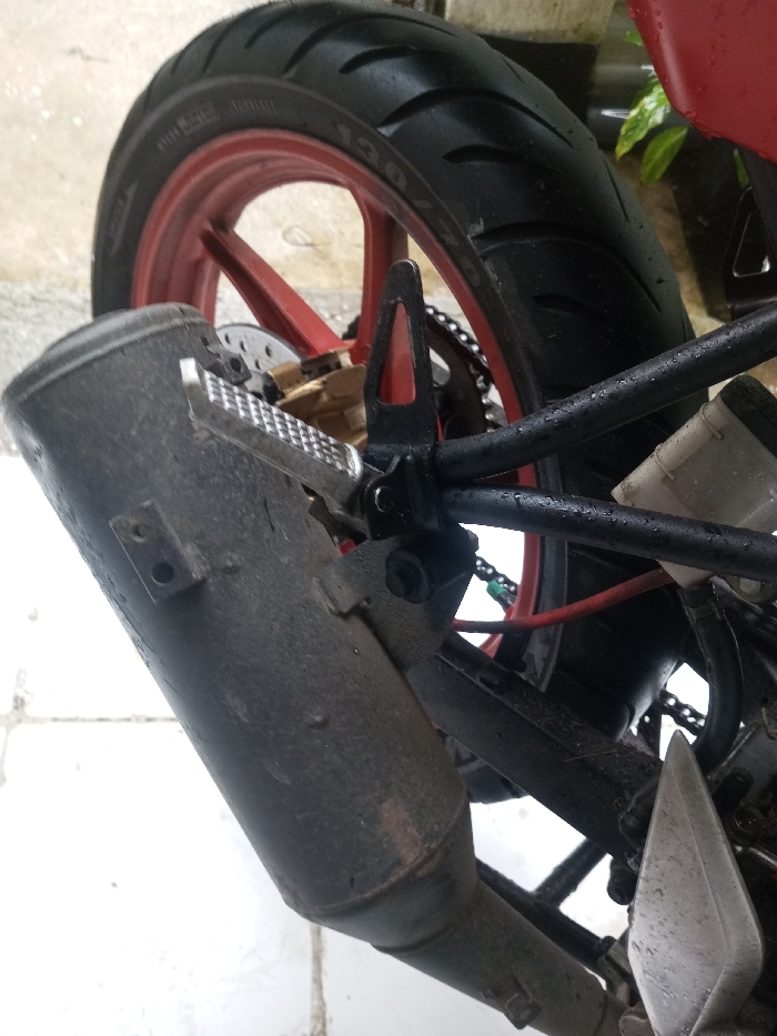 - "The image displays a close-up, angled view of the rear-right section of a motorcycle, situated in Ciherang, Indonesia" by FM-9CukC3, licensed under CC BY 4.0