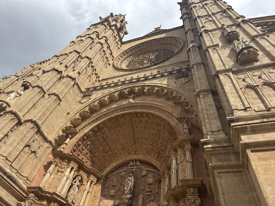 - "A low-angle, upward-looking photograph captures a portion of the southern facade of the Cathedral of Santa Maria of Palma (La Seu) in Palma, Spain" by FM-BS4Ql2, licensed under CC BY 4.0
