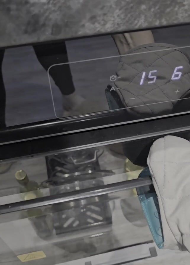- "A person wearing oven mitts opens an oven to reveal a round, silver-colored baking pan filled with a baked dish" by FM-5FCE23, licensed under CC BY 4.0