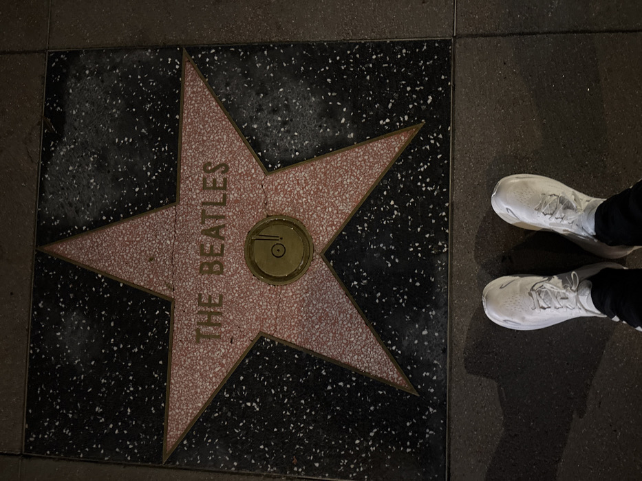 - "A top-down shot reveals The Beatles' Hollywood Walk of Fame star, a five-pointed pink terrazzo star set in black terrazzo" by FM-97btd2, licensed under CC BY 4.0