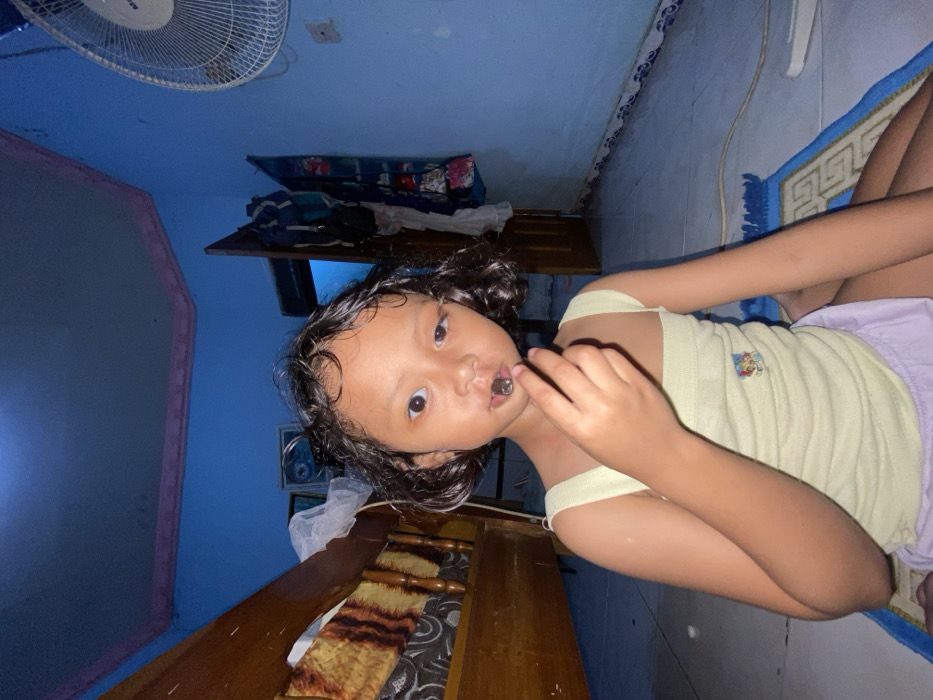 - "A young child with dark, curly hair and dark eyes is seated on a light-colored tiled floor in a room in Gelam, Indonesia" by FM-htxI33, licensed under CC BY 4.0
