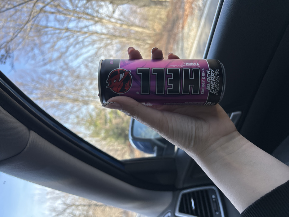 - "A human hand, with fair skin and manicured fingernails featuring white tips and black polka dots, holds a 250ml can of "HELL" energy drink, Black Cherry Flavour" by FM-1rvnf1, licensed under CC BY 4.0