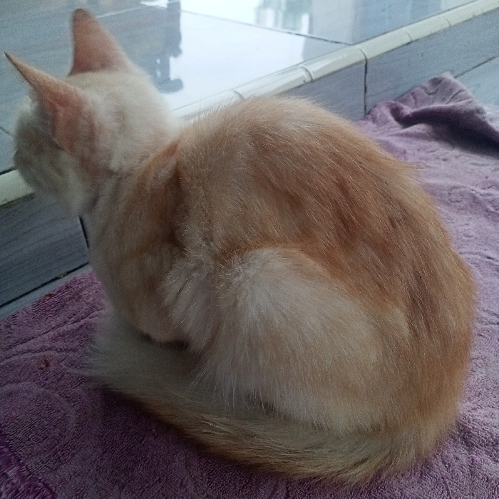 - "In Ketowan, Indonesia, a domestic cat with cream and light ginger fur is observed resting in a seated, curled position" by FM-cHJi83, licensed under CC BY 4.0