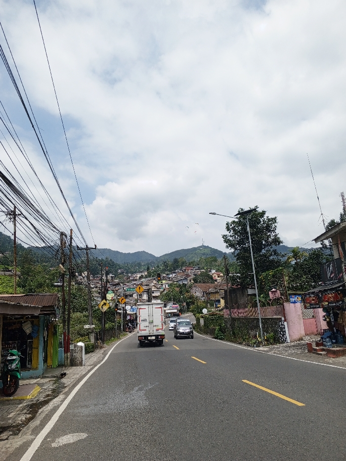- "The image depicts a street scene in Cisarua, Indonesia, looking uphill on a two-lane asphalt road" by FM-6KVk72, licensed under CC BY 4.0
