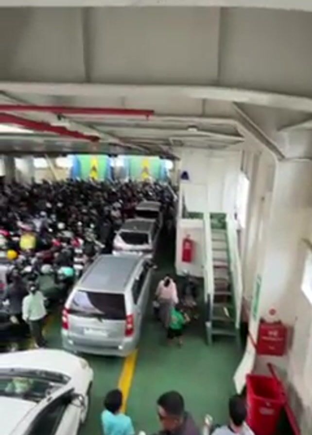 - "interior of a ferry packed with vehicles and people" by FM-Ppxti1, licensed under CC BY 4.0