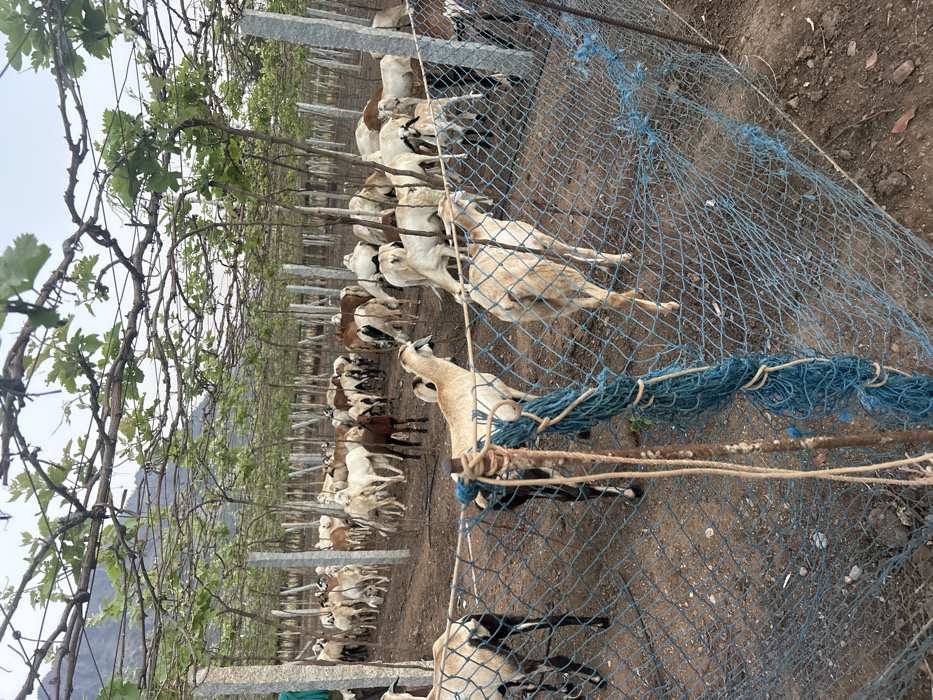 A large herd of domestic goats occupies a trellised field in Chinnalapatti, India