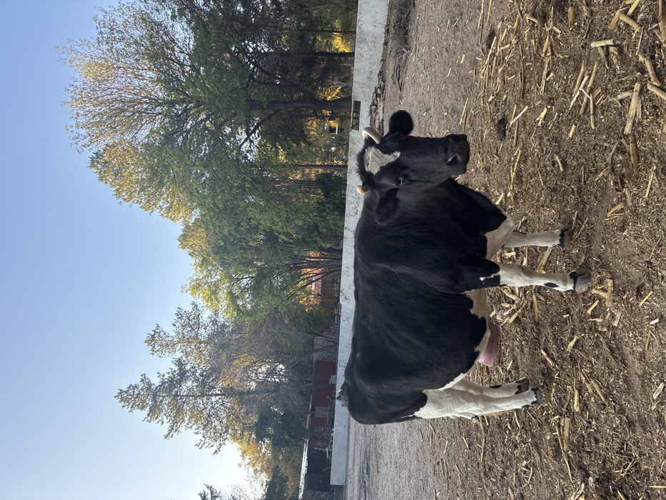 - "A black and white cow lies on a bed of straw" by FM-5mNCn2, licensed under CC BY 4.0