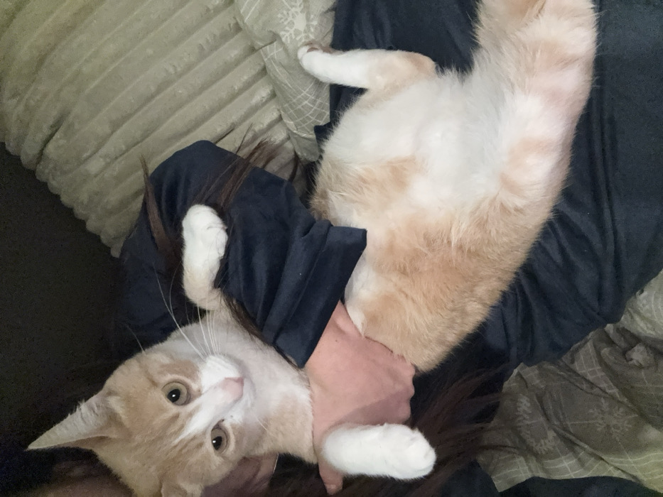 - "The image depicts an indoor scene featuring a cream and orange tabby cat held by an unidentified individual" by FM-xTDQG2, licensed under CC BY 4.0