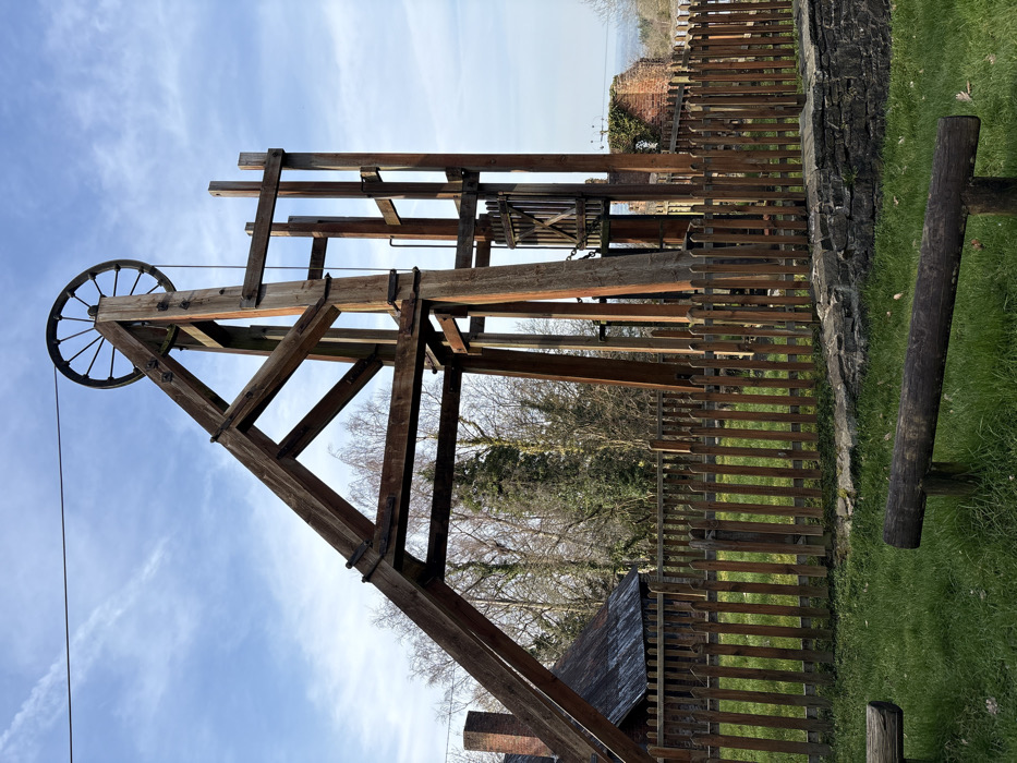 - "The image displays a large, dark-stained wooden headframe structure situated in Snailbeach, United Kingdom, under a partially cloudy blue sky" by FM-RPcgE2, licensed under CC BY 4.0