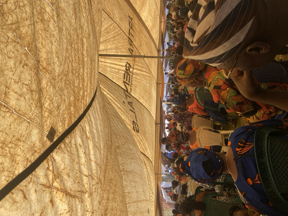 - "This image depicts a large outdoor gathering occurring under a weathered, light-brown canopy tent, situated in the city of Jos, Nigeria" by FM-tm2w73, licensed under CC BY 4.0