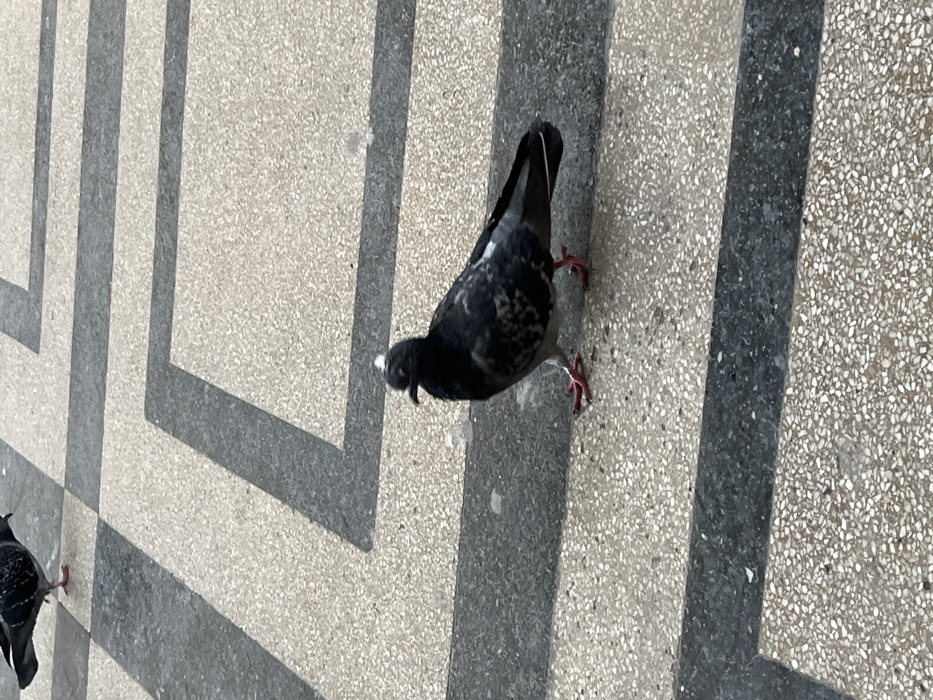 - "The image displays a ground-level view of two pigeons on a patterned paved surface, presumably in Mezdra, Bulgaria" by FM-47eGY2, licensed under CC BY 4.0