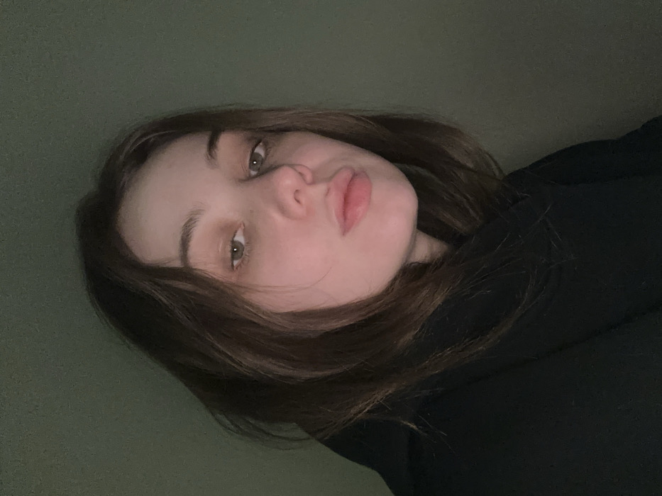 - "A female individual is depicted in a close-up, headshot-style portrait, positioned against a plain, dark olive-green wall" by FM-cUlM43, licensed under CC BY 4.0