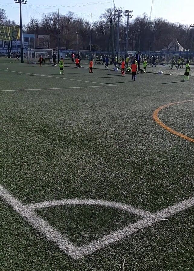 - "On a soccer field with bright artificial turf, a group of players in brightly colored vests perform drills" by FM-PkQV33, licensed under CC BY 4.0
