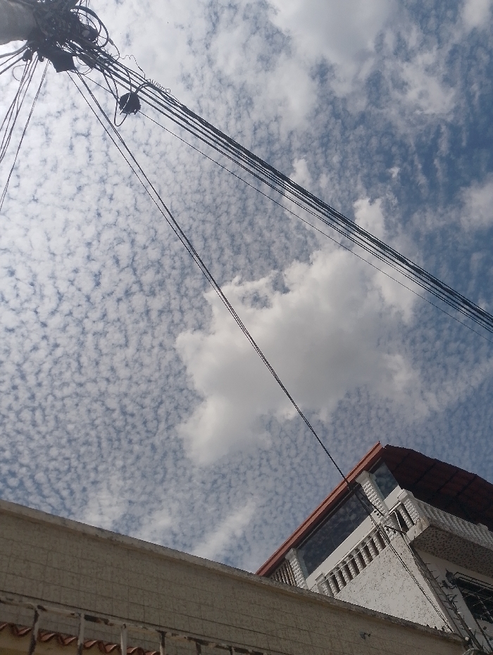 - "The image presents an upward-angled view of an urban sky in Caracas, Venezuela, filled with a pattern of small, dappled white clouds against a bright blue background" by FM-CHVGw2, licensed under CC BY 4.0