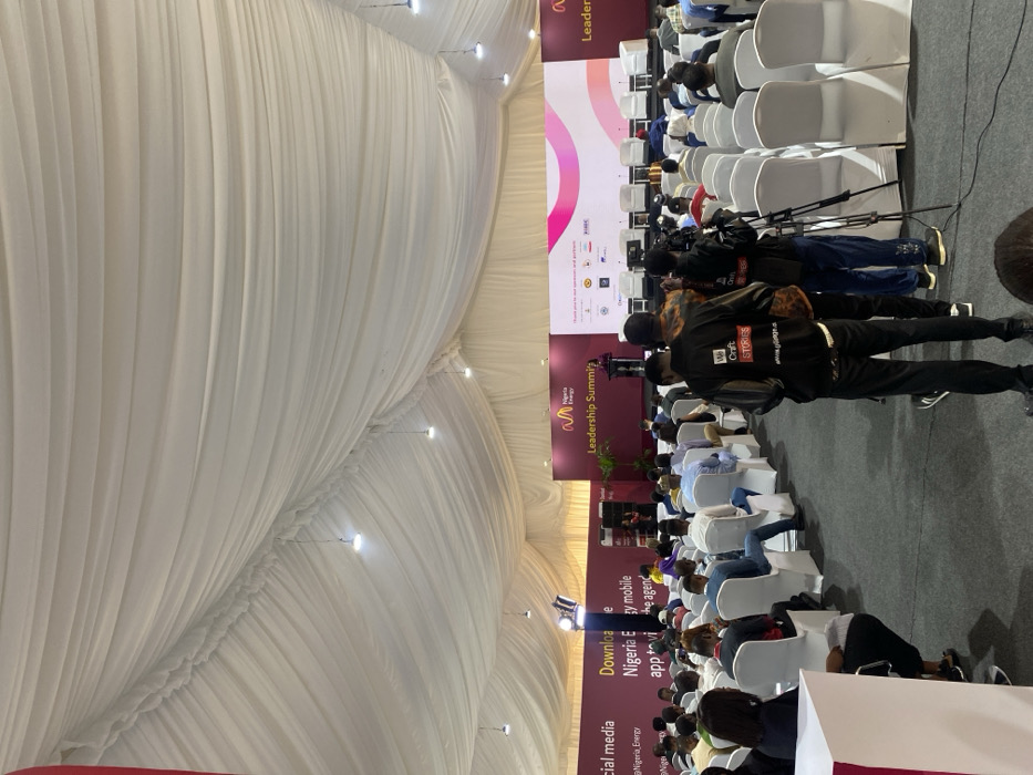 - "This image depicts an indoor event, the "Nigeria Energy Leadership Summit," held within a large, draped white tent structure in Alaguntan, Nigeria" by FM-ZL5X22, licensed under CC BY 4.0