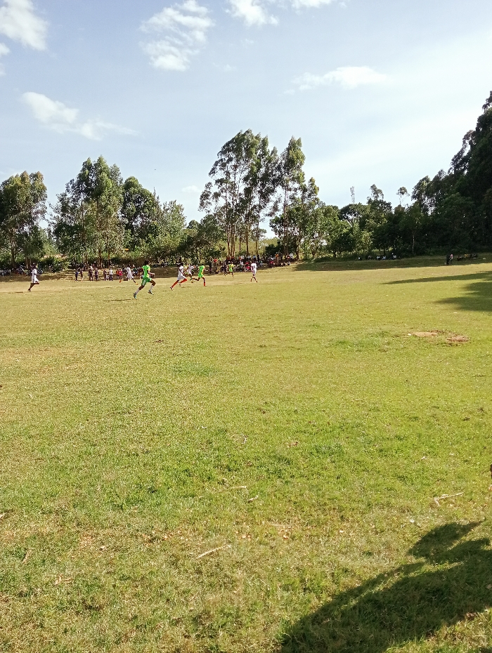 This image depicts an outdoor football match in Lumakanda ward, Kenya