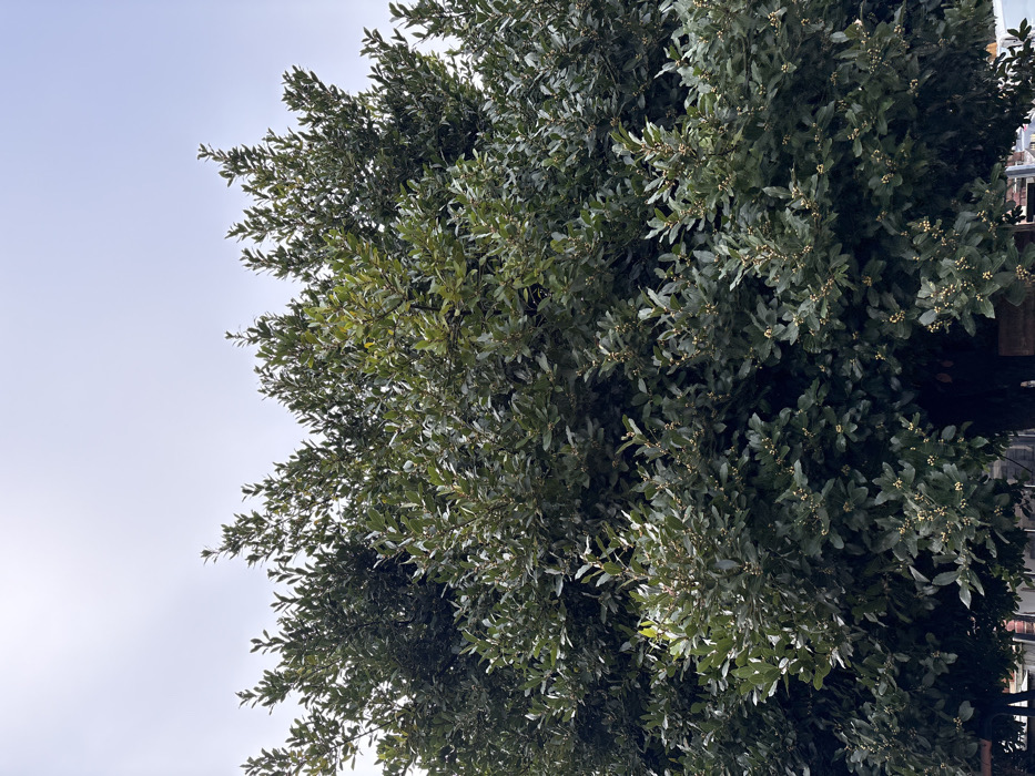 - "The image displays a large, dense broadleaf evergreen tree, centered in the frame, against a pale, overcast sky" by FM-RPcgE2, licensed under CC BY 4.0