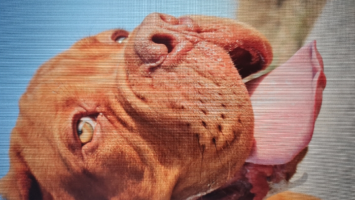 - "An outdoor, close-up, profile shot depicts the right side of a reddish-brown Dogue de Bordeaux type dog's head, facing right" by FM-1TRqb2, licensed under CC BY 4.0