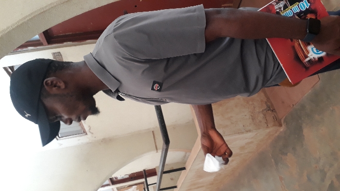 An adult male, exhibiting features consistent with African descent, is depicted standing in profile, facing right, within a building interior or semi-exterior space in Nsukka, Nigeria
