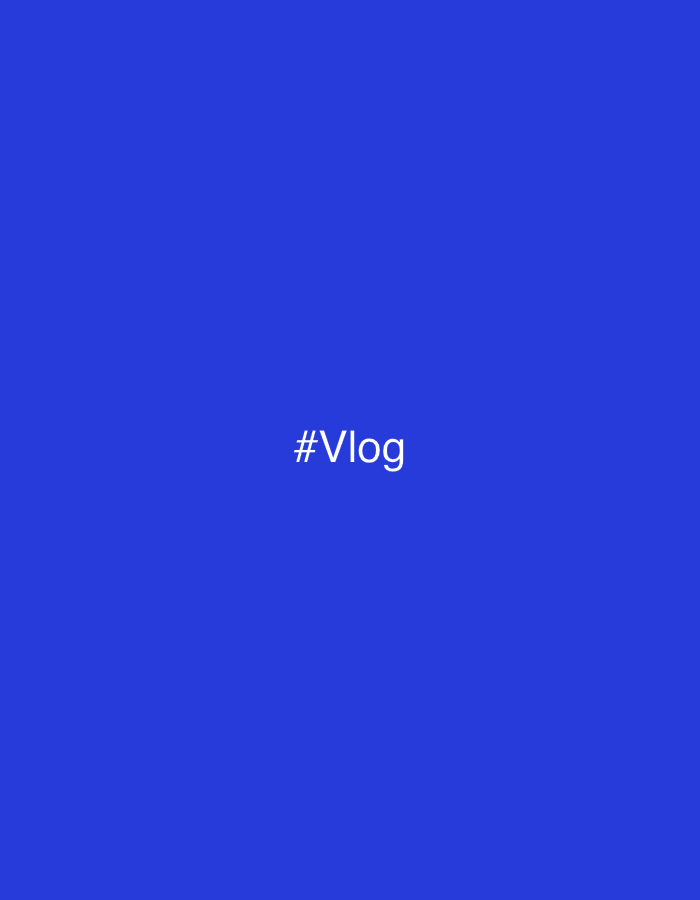 The image displays a solid, uniform royal blue background. Centered horizontally and vertically on this background is the white text "#Vlog" written in a sans-serif typeface. No other elements, subjects, objects, people, actions, or environmental details are present. The image is a graphic design and does not depict a physical location in Ramat HaSharon, Israel, or any other geographical area.