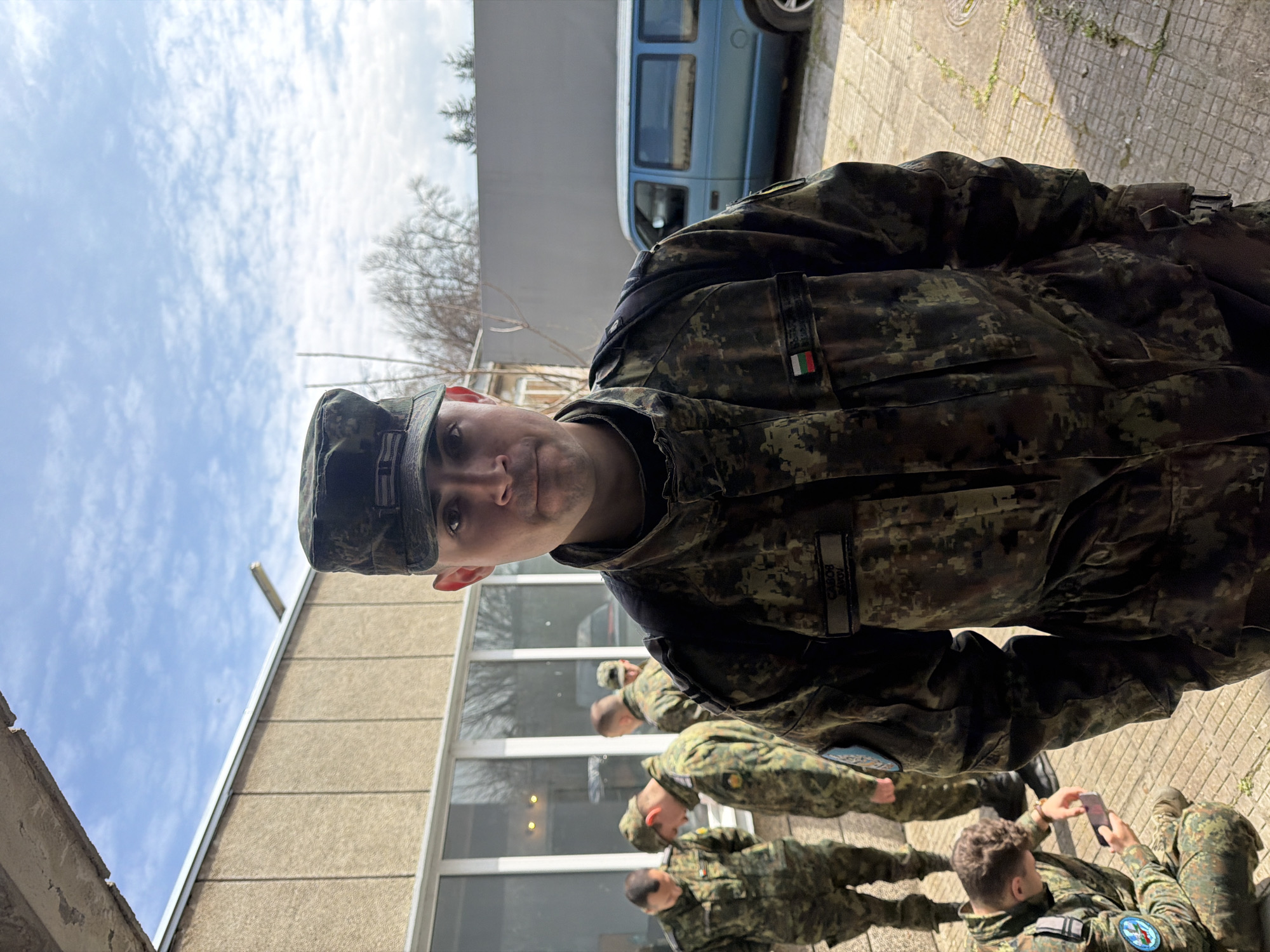 - "An outdoor scene in Pleven, Bulgaria, depicts a group of male individuals in military camouflage uniforms during daylight hours under a partially cloudy sky" by FM-Jucww2, licensed under CC BY 4.0