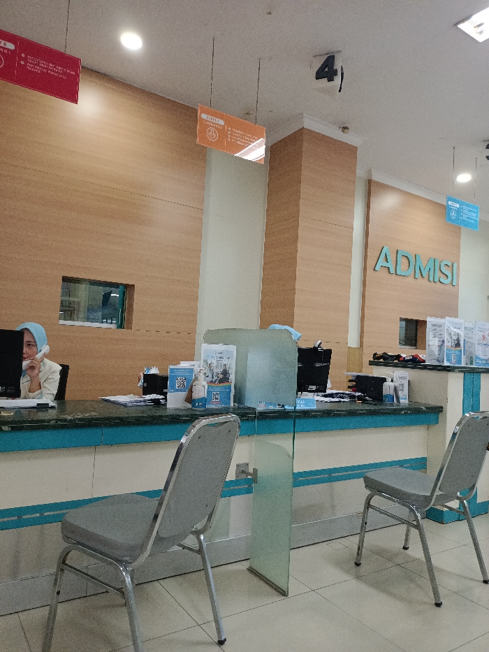 - "The image depicts an indoor reception or service area, identified by the large "ADMISI" (Admission) sign, located in Margorejo, Indonesia" by FM-CLdPk2, licensed under CC BY 4.0