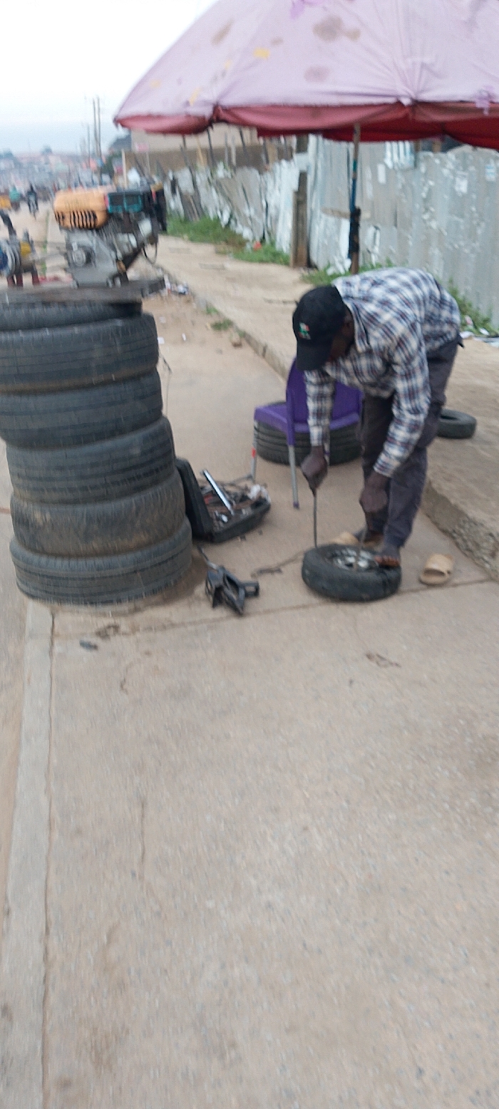 - "The image depicts an outdoor roadside tire repair scene in Kubwa, Nigeria, under an overcast sky" by FM-JRKle2, licensed under CC BY 4.0
