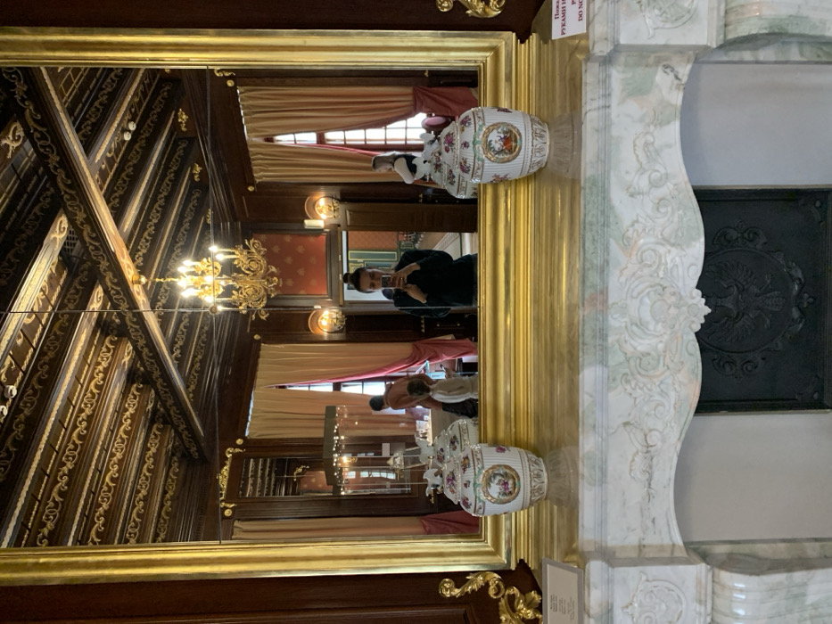 The image captures a mirror selfie taken inside an ornate room within Nesvizh Castle, Nyasvizh, Belarus