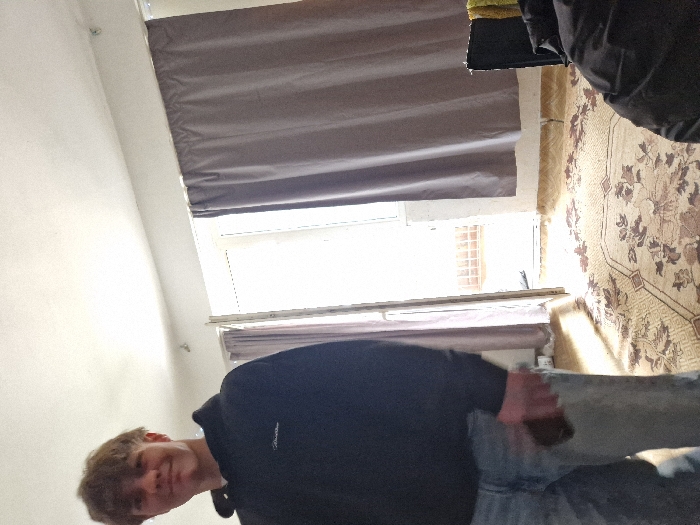 A male subject is depicted standing indoors in a residential setting in the city of Troyan, Bulgaria