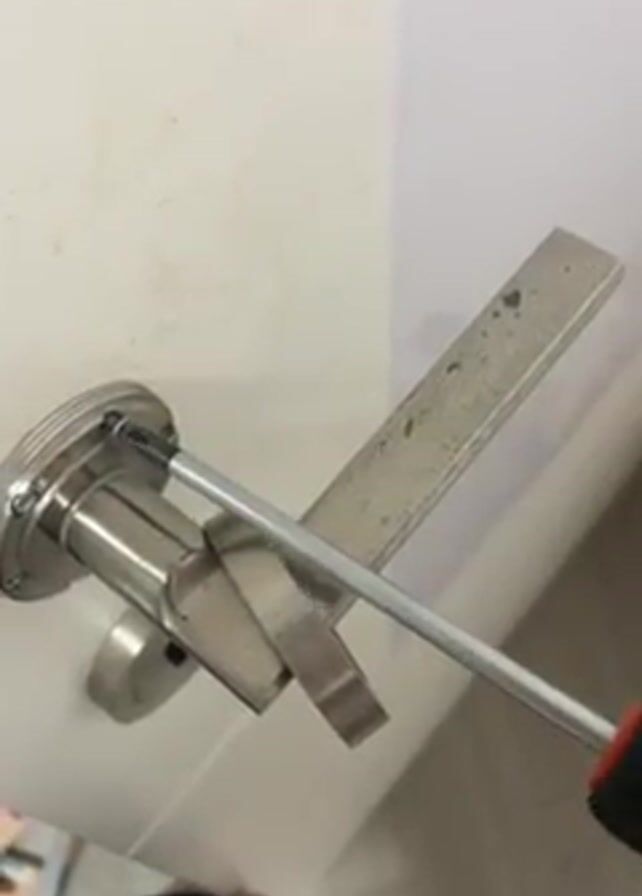 - "A close-up shot shows a hand using a screwdriver to loosen the screws on a metal door handle" by FM-AyUtz1, licensed under CC BY 4.0