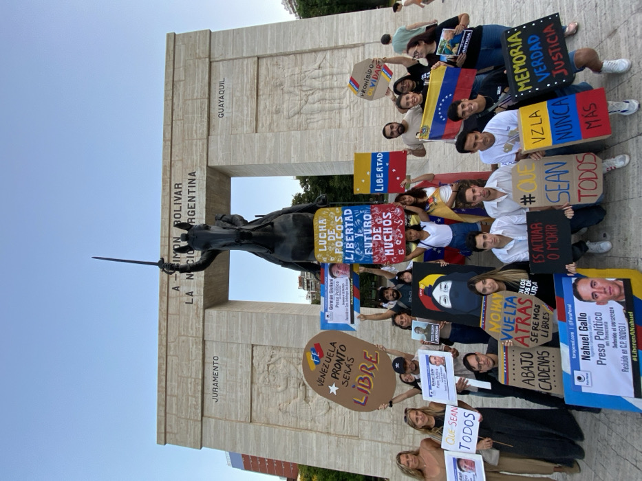 - "A group stands before a monument with a statue of Simón Bolívar in Argentina, holding signs and flags in support of Venezuela" by FM-faLbl2, licensed under CC BY 4.0
