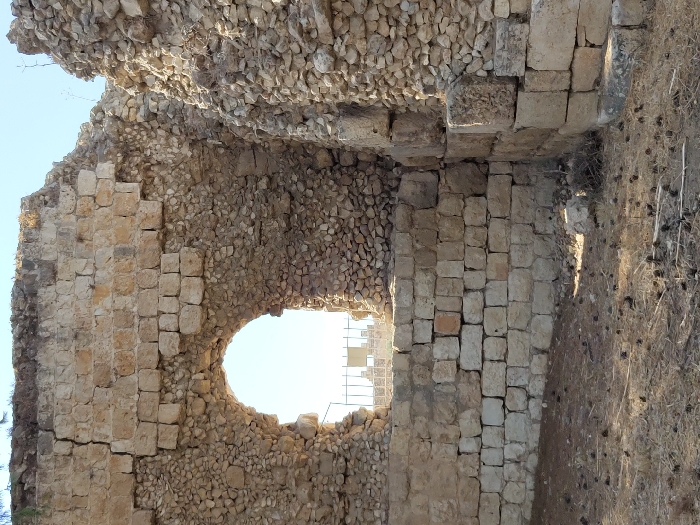 The image displays a sunlit scene of ancient stone ruins, identified as being in the city of Unknown, Israel