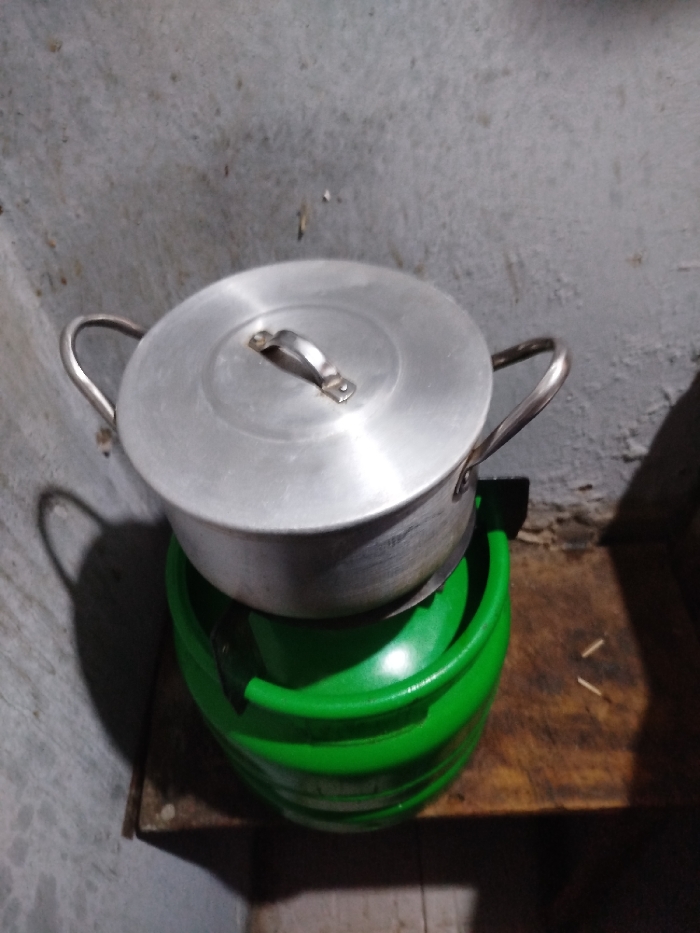 - "An aluminum cooking pot with a lid and two metal handles is centrally positioned on a stack of at least three nested bright green plastic containers, likely buckets or bowls, in an indoor setting in Mape, Nigeria" by FM-3EyKx2, licensed under CC BY 4.0