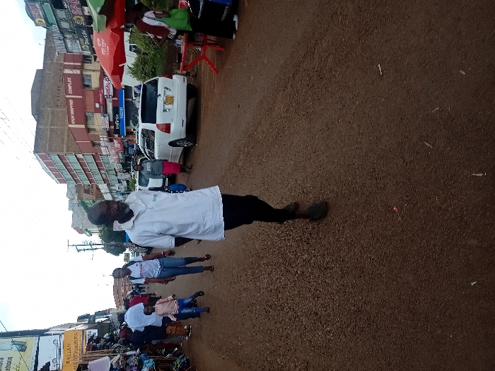 The image depicts a daytime street scene on Gakere Road in Nyeri Town, Nyeri, Kenya
