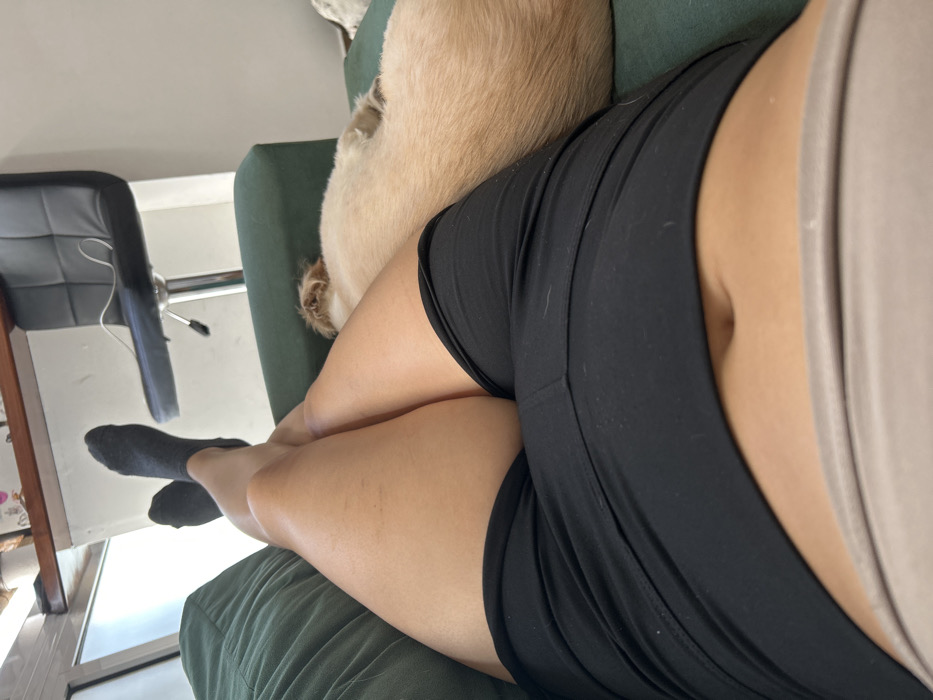 - "A person wearing black shorts and grey socks is reclined on a green sofa" by FM-j80jY2, licensed under CC BY 4.0