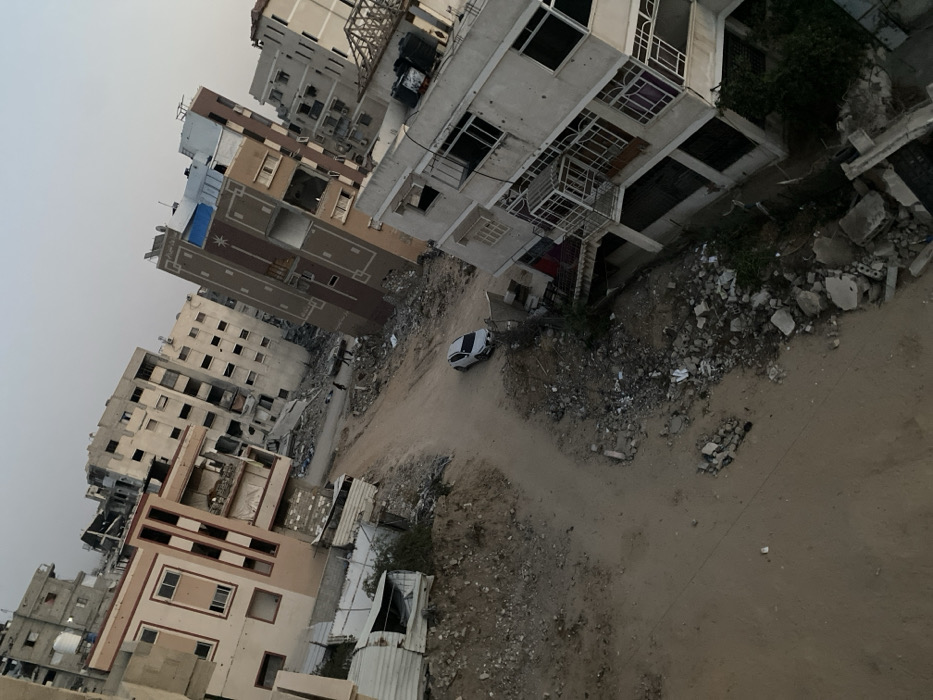 - "This image depicts a wide-angle view of a heavily damaged urban environment in Khan Yunis, Palestinian Territory, under an overcast or hazy sky" by FM-zLbwE2, licensed under CC BY 4.0