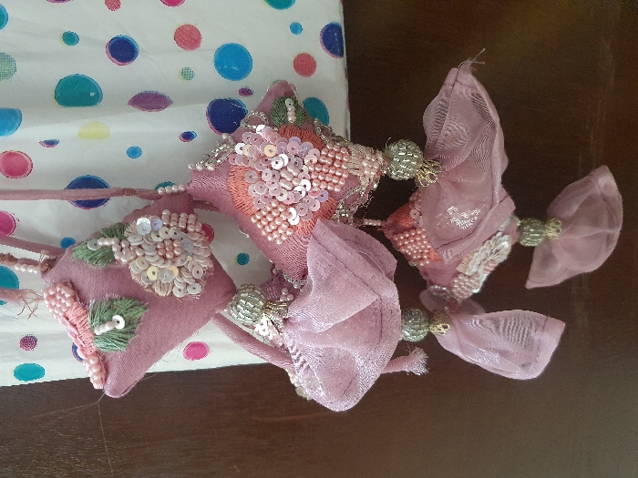 A handcrafted decorative textile accessory, identified as a 'latkan' or tassel, is prominently displayed, originating from Kolkata, India