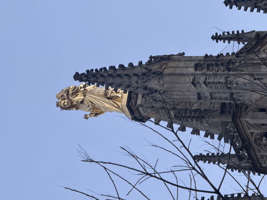 - "A gilded statue of the Virgin Mary holding the infant Jesus is positioned atop the Pey Berland Tower, the separate bell tower of Bordeaux Cathedral (Cathédrale Saint-André de Bordeaux), located in Bordeaux, France" by FM-qzRJ63, licensed under CC BY 4.0