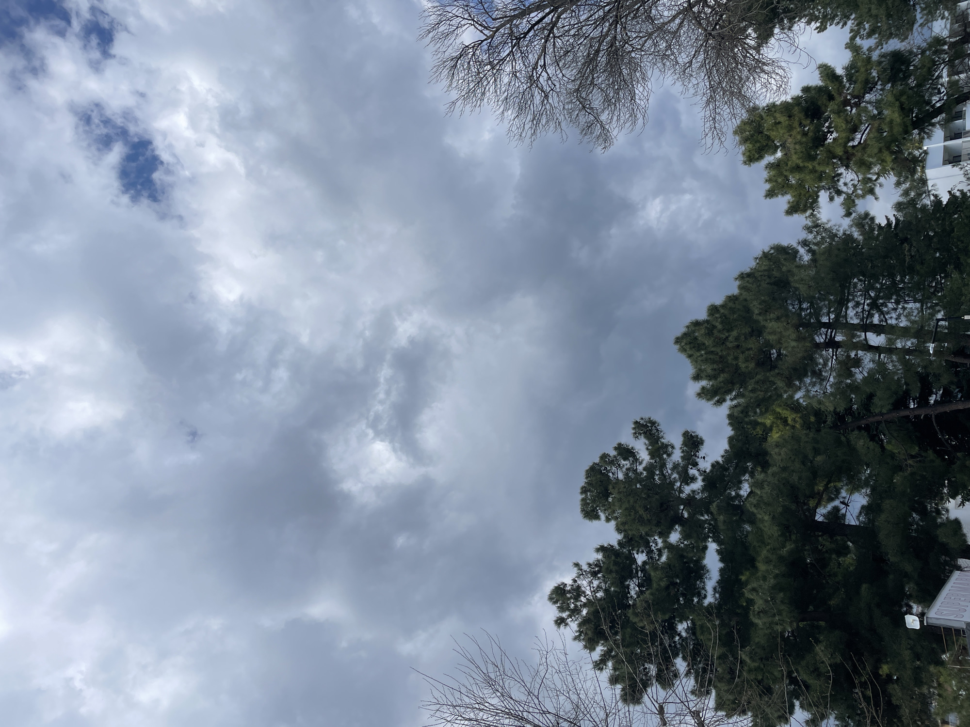 - "The image is a view upwards towards a cloudy sky, framed by tree branches" by FM-QuEPQ2, licensed under CC BY 4.0