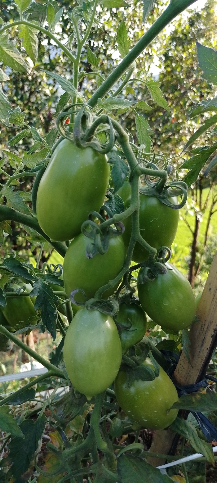 - "The image displays a close-up of a tomato plant bearing multiple unripe, green, oval-shaped tomatoes" by FM-ysKET2, licensed under CC BY 4.0