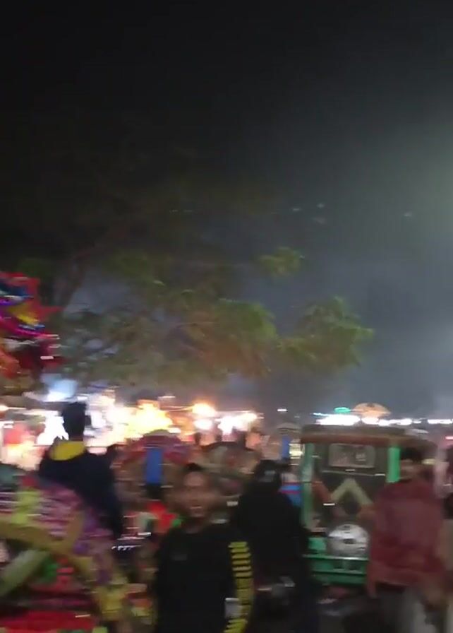 crowded street scene at night, likely a market or festival area