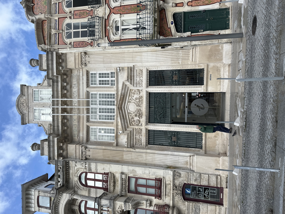 - "An exterior, eye-level photograph depicts three ornate multi-story buildings on a cobblestone street in Aveiro, Portugal, under an overcast sky" by FM-5WnvD2, licensed under CC BY 4.0