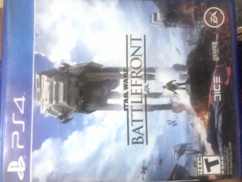 A PlayStation 4 video game case for "Star Wars Battlefront" is depicted