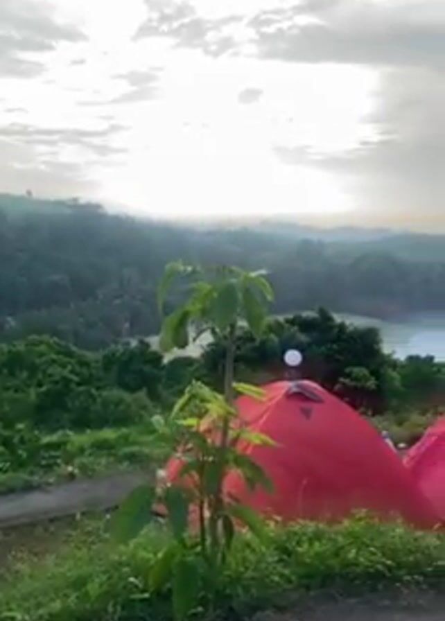 The video pans across a campsite overlooking the ocean