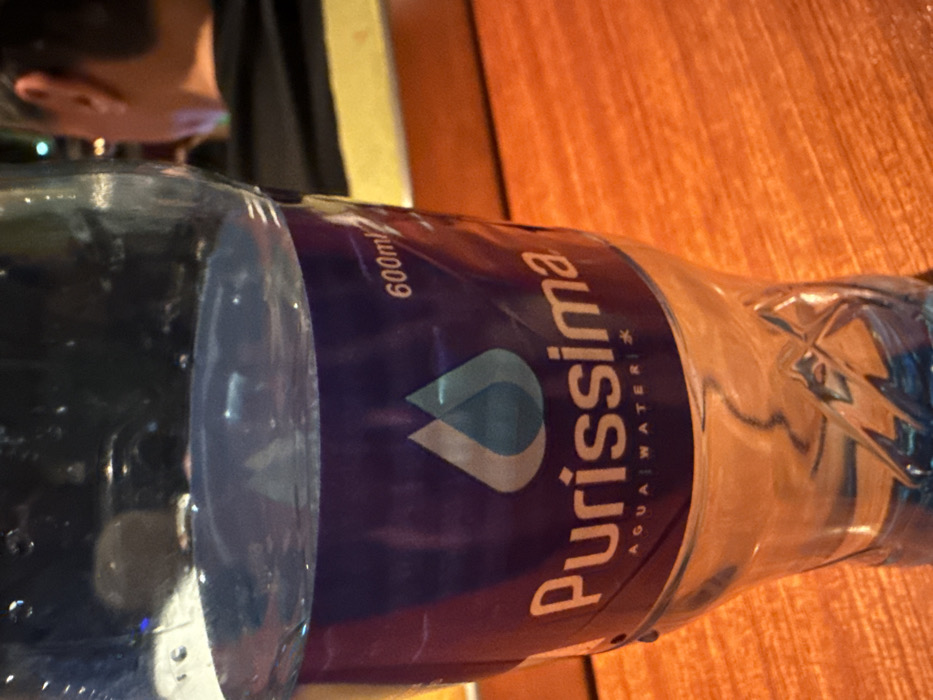- "A 600ml plastic water bottle labeled "Purissima" with a blue and white drop-shaped logo is angled on a wooden surface" by FM-mkaXg2, licensed under CC BY 4.0